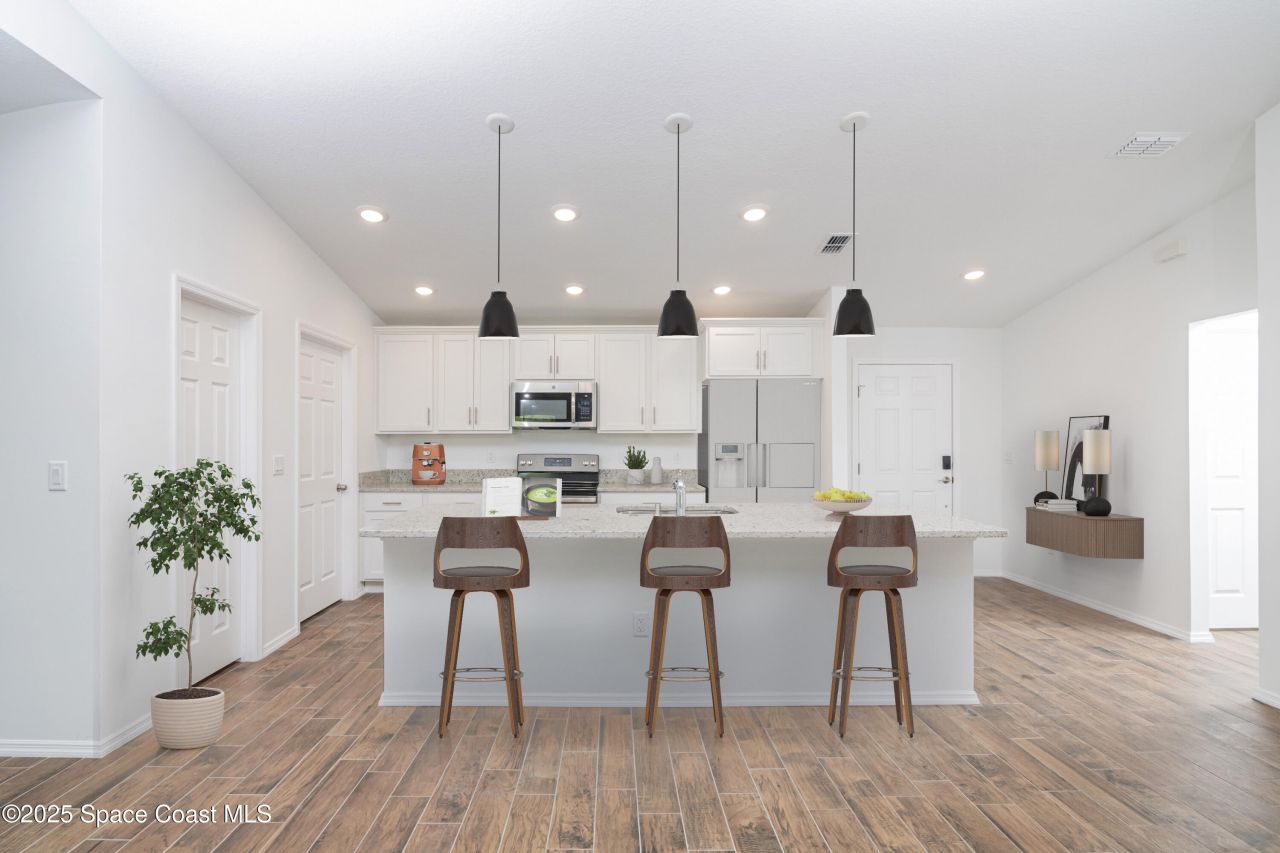 SPECIAL SALE - PALM BAY Emma Model 2, 1779 Sqft living Area, Total Sqft 2369. Open concept, high ceilings, 3 bedrooms 2 full bath WITH AN EXTRA FLEX ROOM that you can convert in a home office, studio or Bedroom. Kitchen with Beautiful cabinets and quartz countertops, Vinyl Luxury Floor on the entire Home, Covered Lanai, Hurricane impact Windows, . No HOA Fees. Includes 2- 10 HOME BUYER WARRANTY