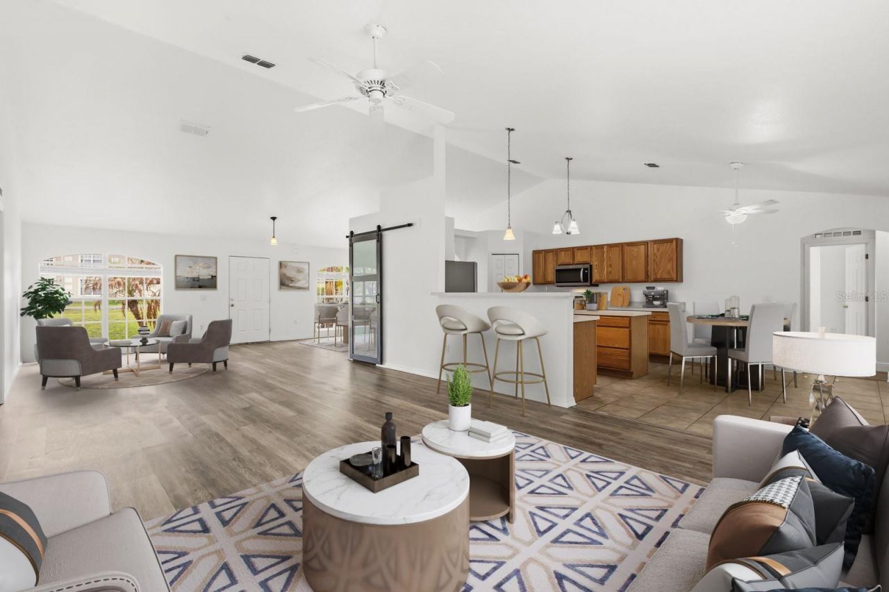 One or more photo(s) has been virtually staged. Welcome to this beautifully well-maintained 4-bedroom home in the quiet and desirable community of The Glen. This move-in-ready home offers major updates for peace of mind, including a new AC system (2025), new water heater, new carpet in the bedrooms, new low-maintenance vinyl plank flooring, and fresh interior paint throughout. The stove is approximately one year old, and a new sliding glass door has also been installed. The roof will be replaced by the seller prior to closing with an acceptable offer. Step inside to an open and airy floor plan filled with natural light. The spacious living area flows seamlessly into the kitchen, featuring ample cabinetry, stainless steel appliances, a new microwave, plenty of counter space, and the convenience of two sinks. The functional layout also includes two pantries and generous storage throughout. Large windows and the new sliding glass door lead to a screened-in patio and private oversized backyard with plenty of space to relax, entertain, garden, and more. The outdoor area has also been updated with new fans and new screens.Septic system inspected about a year ago, a dedicated laundry area, and a two-car garage with epoxy floors. Conveniently located just minutes from shopping, dining, major hospitals, and The Villages. Just 2 miles from Fruitland Park amenities, including a public pool, pavilions, picnic areas, youth sports, movie nights, park days, and an annual BBQ cookoff. Enjoy nearby Lake Griffin State Park with boat access to the Harris Chain of Lakes, and just 10 miles to Brownwood for live music, dining, and entertainment. Tucked in a peaceful, friendly neighborhood, this home offers the perfect balance of privacy and convenience. Schedule your private showing today.