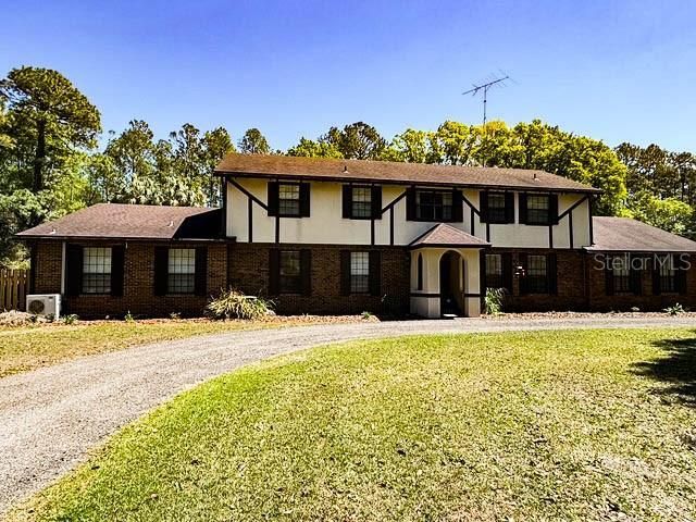 This 3,473 sq ft, two-story brick and stucco home offers four bedrooms, four baths, nestled at the end of a cul-de-sac. Situated on an expansive lot, the property backs up to the Starke golf course. Enter the front door, to the foyer opening up to a spacious main floor living room, dining room, and a chef's kitchen. The kitchen is equipped with beautiful cabinetry, granite countertops, a microwave, oven, separate cook-top, and a convenient breakfast bar for quick meals and entertaining. Beyond the main living areas, an additional room serves as a den, playroom, or game room, perfect for gatherings or relaxation. Off this space is a second owner's suite featuring a full bath with both a tub and shower, adding a retreat ideal for guests or multi-generational living. A beautiful air-conditioned Florida room offers ample natural light, with vaulted ceiling, and a fourth bath. The perfect place to entertain family and friends as they overlook the swimming pool and fenced backyard.