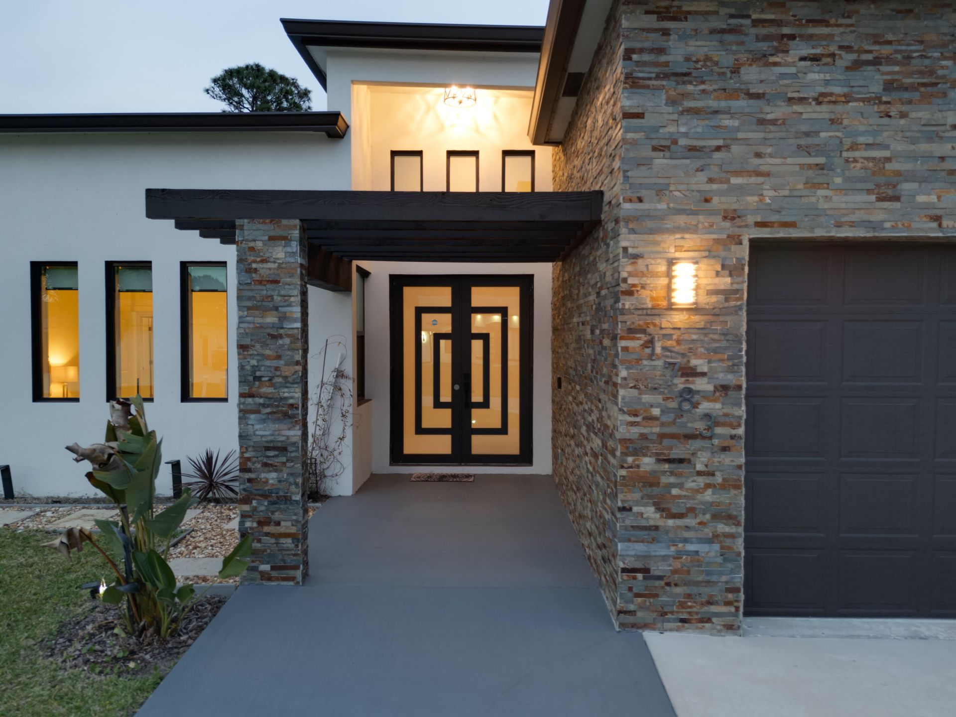 Built in 2023, this modern 4-bedroom, 4.5-bath home combines contemporary design with exceptional craftsmanship for a lifestyle of comfort and style. Skylights fill the interiors with natural light, while polished marble-look tile and sleek finishes create a bright, inviting atmosphere. The spacious kitchen-complete with a large island and high-end finishes-anchors the open-concept living area. A full pocket slider opens to the screened patio, blending indoor and outdoor living seamlessly. Each bedroom features its own private en-suite, offering flexibility and privacy for family or guests. Outside, a fully fenced yard showcases meticulous design with garden beds, wood decking, pavers, and fruit trees. Additional highlights include impact windows and doors, energy-efficient Icynene insulation, and a blend of modern durability with timeless appeal. Move-in ready and exuding the freshness of new construction-without the wait.