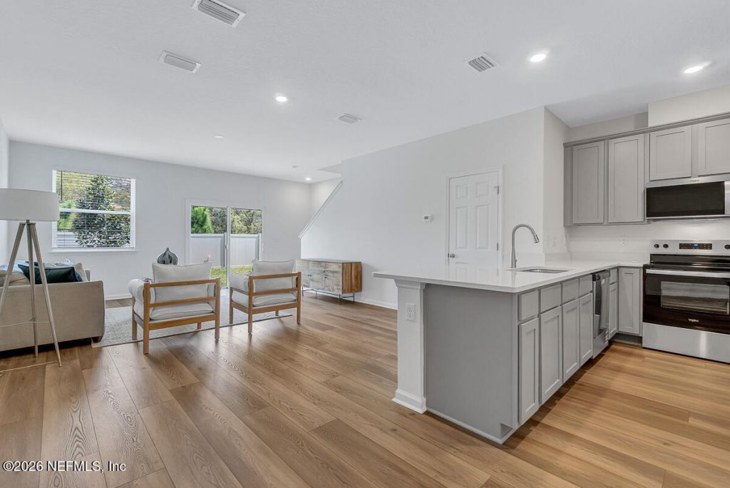 This two-story townhome is READY for move-in! This beautiful, two-story home showcases an open floor plan with 9-ft. ceilings and luxury vinyl flooring throughout. The stylish kitchen boasts a breakfast bar, quartz countertops, large pantry, Whirlpool stainless steel appliances and white Woodmont 42-in. upper cabinets. Upstairs, the primary suite features a walk-in closet and connecting bath that offers quartz countertops and a walk-shower. Additional highlights include ENERGY STAR certified lighting, Moen faucets and Kohler sinks. Outside, enjoy the convenience of low-maintenance landscaping. KB Home at Orchard Park provides maintenance free living with a tot lot, dog park low HOA and NO CDD FEES! Enjoy the proximity to Treaty Park and historic St. Augustine and its many activities! Closing cost contribution is available for this home.
