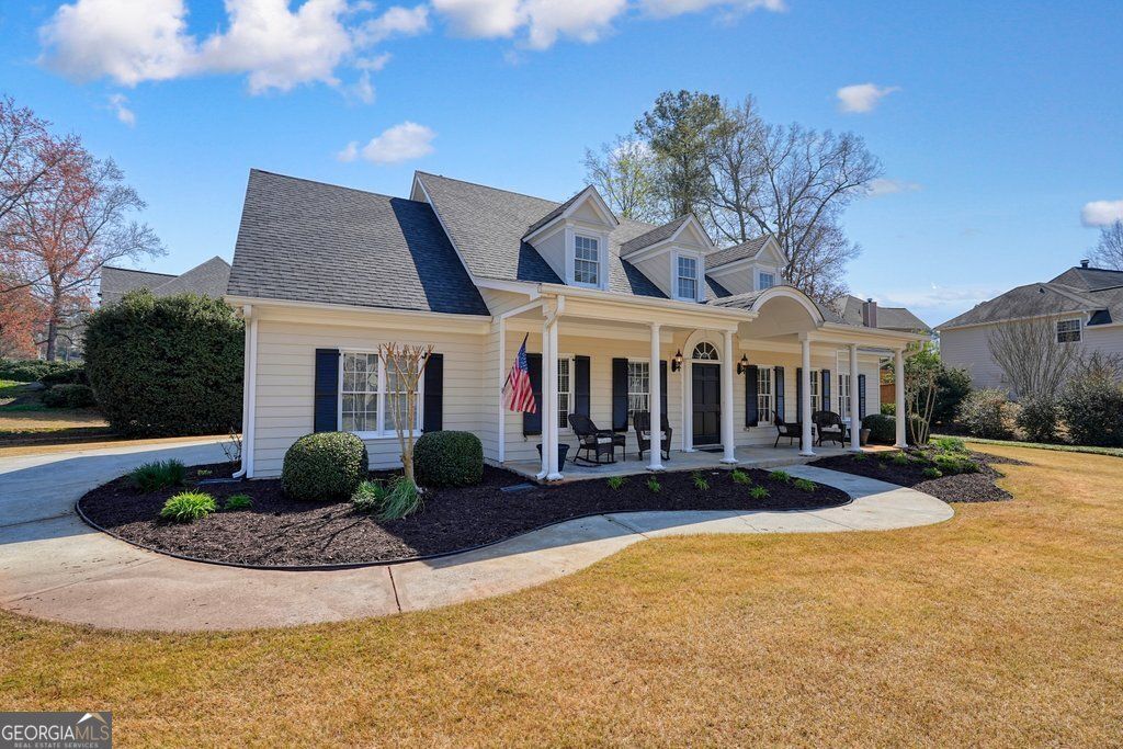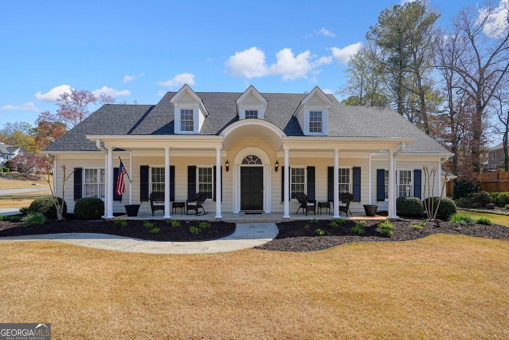 Welcome home to this impeccably maintained 4-bedroom, 3-bathroom traditional beauty nestled in one of East Cobb's most sought-after neighborhoods, zoned for top-rated Davis Elementary and Lassiter High School! From the moment you arrive, the charming Southern-style rocking chair front porch invites you to slow down and stay awhile. Step inside through a grand, wider-than-standard entry door adorned with exquisite brass fixtures - an elegant first impression that perfectly previews the character found throughout. Gleaming hardwood floors flow through the foyer, dining room, and hallways of the main level, anchoring a dramatic two-story foyer flanked by a formal dining room on the right and an elegant sitting room on the left - a classic, gracious layout made for entertaining. The foyer opens into a breathtaking two-story living room with soaring ceilings and abundant natural light - warm and inviting in all the right ways. The large kitchen features stunning ash wood cabinetry with under-cabinet lighting, sleek stainless steel appliances, and tile floors, flowing seamlessly into the breakfast room - a one-of-a-kind architectural moment featuring a stunning turret-style white shiplap ceiling that draws the eye upward and evokes the effortless elegance of a luxurious island retreat. Tucked between the dining room and kitchen, a wet bar area offers the perfect setup for entertaining or a beautifully staged buffet station - a host's dream. The kitchen flows into one of the home's most jaw-dropping features: a massive addition that must be seen in person to be fully appreciated. Flooded with natural light and finished with beautiful tile floors, this extraordinary space features a towering two-story rock wall that is nothing short of a showstopper, a comfortable seating area, and a recreation zone large enough for a full-size pool table. The ceiling is a true custom craftsmanship statement - soaring vaulted pine beadboard built with 5/4 pine and finished with 1 pencil mold that climbs to incredible heights, adding to the already dramatic scale of this remarkable space. Whether you envision a second family room, a game room, or the ultimate entertainment hub, this space delivers on every level. Behind the kitchen, a laundry room and full bathroom with a private connecting door to a main-level bedroom or office round out the main floor with excellent flexibility. Upstairs, an open loft overlooking the living room provides a cozy retreat before leading to the expansive primary suite, complete with a tray ceiling and generous room for a sitting area. The spa-like en-suite bath features double vanities, a stand-up shower, and a garden soaking tub, flowing into a truly massive walk-in closet. Two additional guest bedrooms and a full bath occupy the opposite wing - one bedroom featuring beautiful hardwood floors - offering privacy and comfort for family and guests alike. Outside, a professionally landscaped backyard oasis awaits - complete with a serene fountain, a spacious patio perfect for entertaining, and a swing set and treehouse ideal for kids. A double garage sits on one side of the home, with additional dedicated storage for yard tools and equipment on the other. This is East Cobb living at its finest - a lovingly cared-for home filled with custom details, one-of-a-kind spaces, and timeless character. Don't miss it!