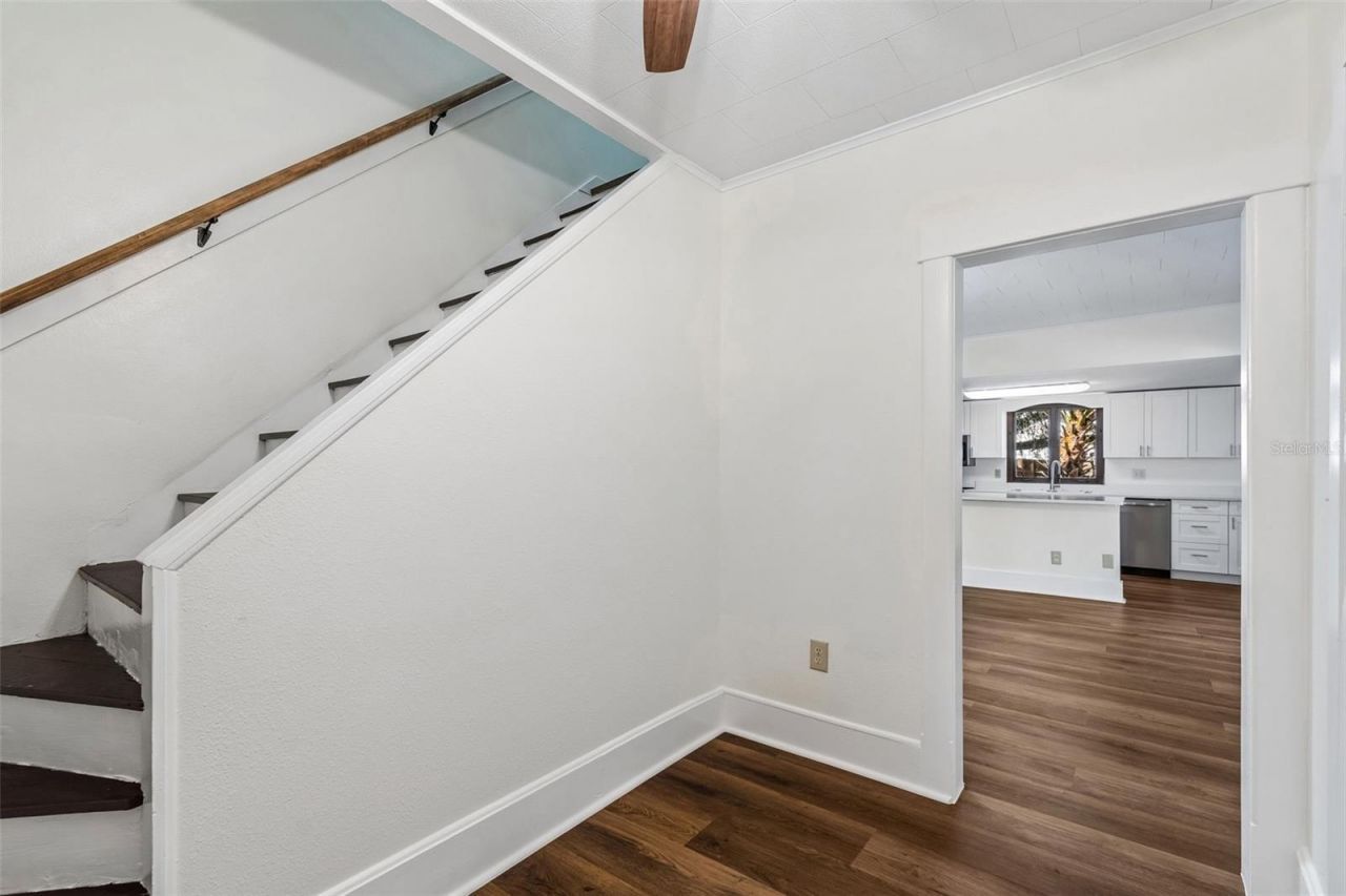 Three bedroom, two bath home built in 1910 with all the character you'd expect from a century-old property, but completely refurbished in 2025. Located in Zephyrhills' historic district, with convenient access to nearby shops, dining, and everyday needs. New roof, and the interior and exterior have been freshly repainted. The kitchen is brand new with shaker cabinets, quartz countertops, and brand new stainless steel appliances with a 5-year warranty, plus a brand new washer and dryer. On the first floor you'll find two bedrooms and a brand new bathroom with a marble countertop, plus a large living room and an even larger game room filled with windows overlooking the yard. Upstairs is the primary bedroom with a brand new full bath on one side and a bonus/flex room on the other, ideal for an office, hobby space, or additional storage. The home sits on a spacious double lot with room for a future garage, and there are two sheds already in place. Out back, enjoy a private stone patio, perfect for morning coffee or an evening cocktail. Additional upgrades include a new electrical panel with new breakers, brand new air conditioning, updated plumbing, and brand new laminate flooring throughout.