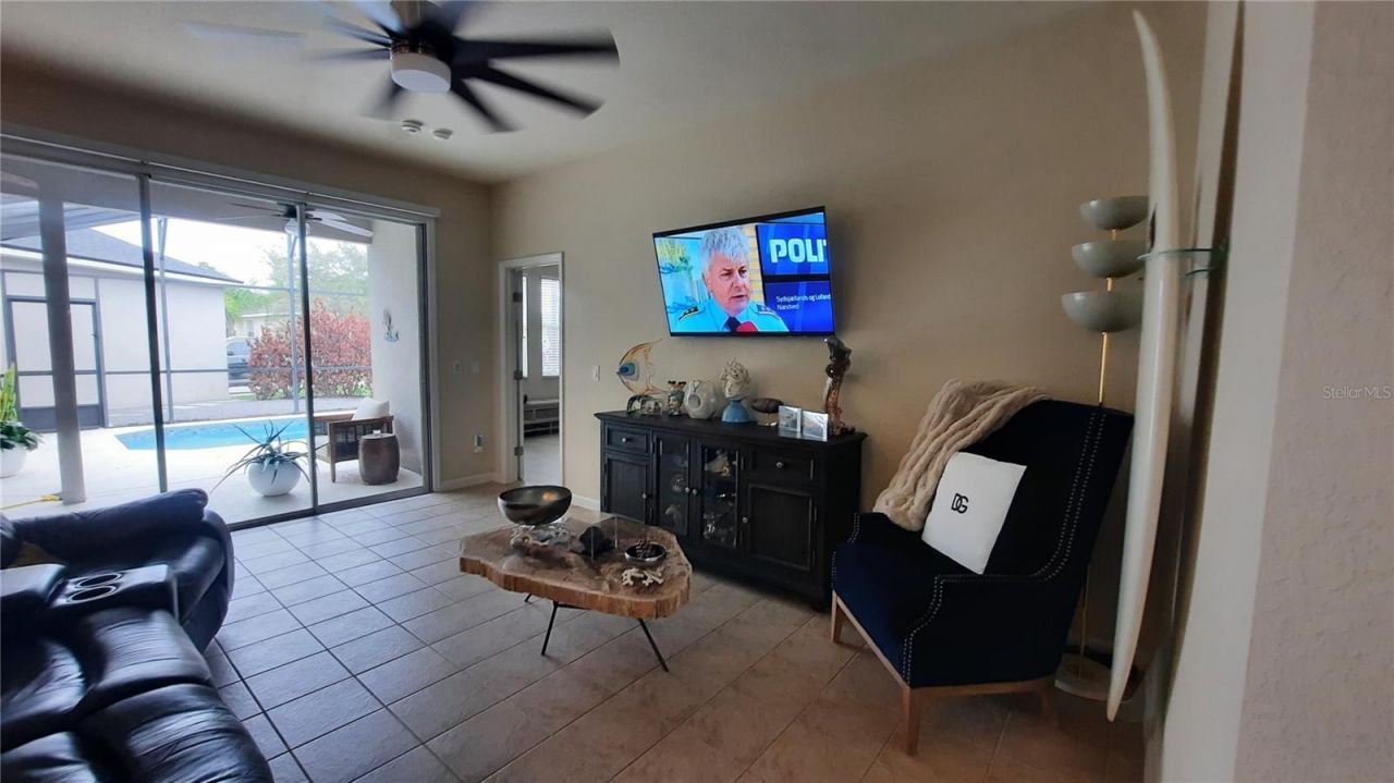 Home with a 4-bedroom, 3-bathroom single-family property located in a vibrant gated community that offers RESORT-STYLE AMENITIES. As you step inside, you'll be captivated by the open-concept floor plan that effortlessly blends style and functionality, with neutral colors, tile flooring throughout, elegant finishes and true pride of ownership. The kitchen has kraft maid custom soft close cabinets with 24in stacked cabinets with frosted glass and quartz countertops and backsplash. Added cabinets to the backside of the island for more storage. A flowing layout into the dining area, enhanced with a charming chandelier in dining area, and a view of the backyard from the dining room, living room and kitchen. Garage is located in the rear of the home. Laundry room is right off the garage with a large storage closet or owners closet. Home get a lot of natural light. Home is ideal for entertaining. This property offers an exceptional opportunity as it can be utilized as a short-term rental, long-term rental, or primary residence. Beyond the confines of this home, the community beckons with a plethora of amenities to cater to every interest. From basketball, sand volleyball and pickle ball courts for sports enthusiasts to a cinema and game room for entertainment, there is something for everyone. The large pool area with a jacuzzi and beach area invites you to unwind while the gym and fishing pier with BBQ area cater to both active and leisurely pursuits. The community also offers basic landscaping and pool maintenance for homeowners. Don't miss this opportunity to own a piece of paradise in a community brimming with activities and charm. Embrace the Florida lifestyle at its finest. Contact us today to schedule a viewing and make this dream home yours. This is a very quiet and established community. New roof in 2025. New gas tankless water heater in 2024 and new AC unit in 2021 and pool resurfaced in 2022 with new pool heater in 2022.