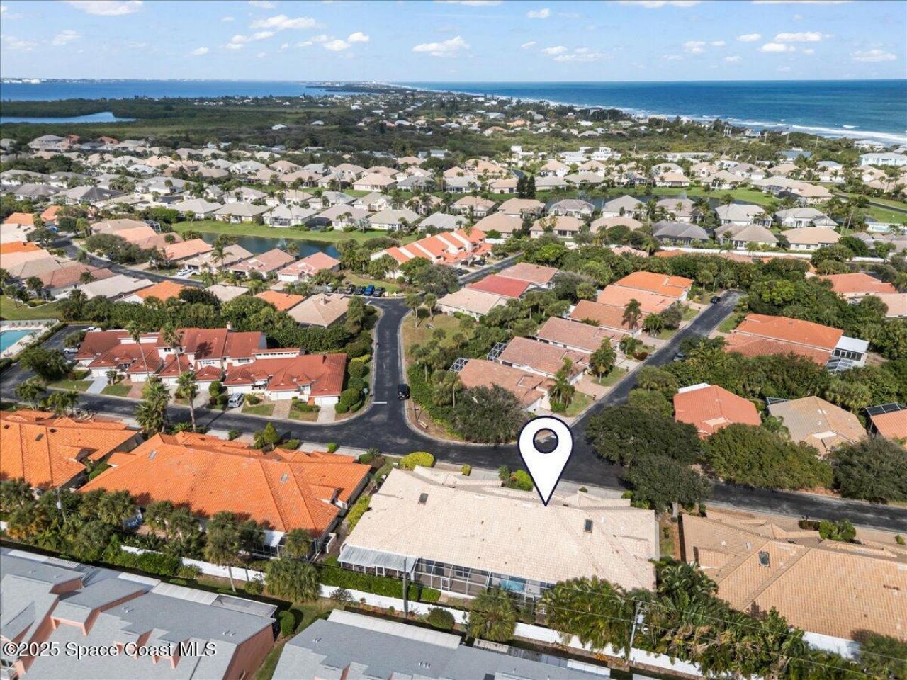 Watch the sunrise on the beach and stroll the dock at sunset on the Indian River Lagoon without ever leaving the neighborhood. This rare immaculate 2-bed 2-bath villa is located in the highly desirable South Shores community. Enjoy fresh and salt-water fishing, surfing and on-site tennis plus Tuesday happy hour with neighbors at the pool cabana. Catch rocket launches right from your driveway with dolphins manatees and nesting sea turtles as part of everyday life. The protected natural setting offers clean quiet beaches with no public access for miles. Publix is just two miles away. Low HOA fees, A-rated schools and true resort-style amenities make this move-in-ready gem an exceptional find.