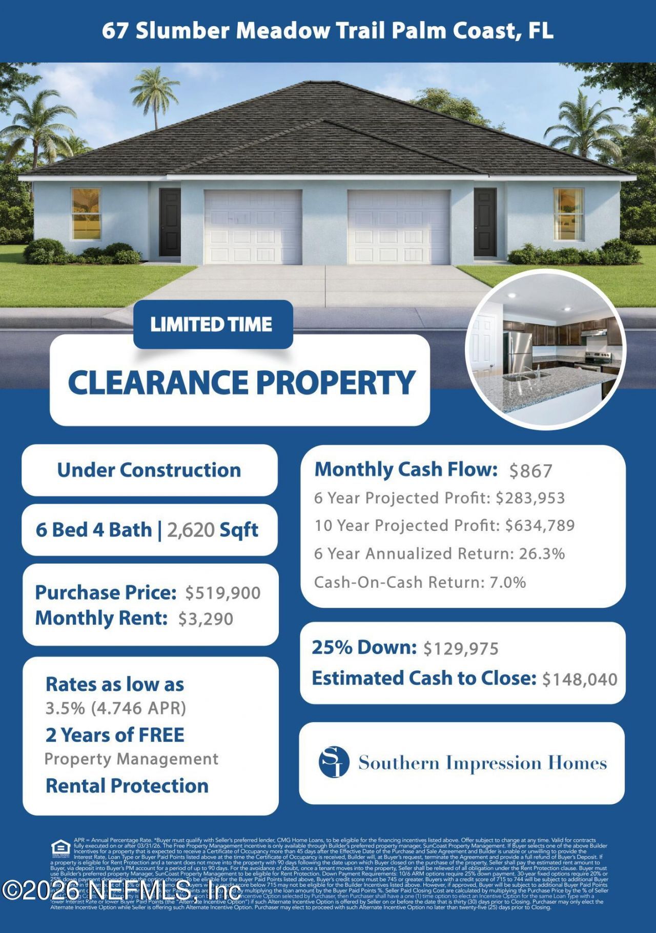 INVESTMENT OPPORTUNITY! Brand NEW construction by Southern Impression Homes @ CLEARANCE PRICING! This home qualifies for a special 3.5% interest rate (4.746% APR) along with 2 FREE years of professional property management and RENT PROTECTION included, providing added confidence and convenience for investors. Enjoy the peace of mind that comes with new construction, builder warranties, modern features, and CASH FLOW. Builder offering limited-time incentives and special financing programs - ask your REALTOR for complete details.FREE INVESTMENT PLAYBOOK - Contact Builder !**House Hacking Programs Available!**