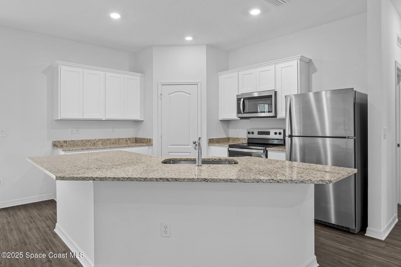 Ask us about our incentives, builder paid closing costs, & no down payment options! This beautiful, 3-bedroom, 2-bath home comes with over $10,000 in upgrades. These include all new energy-efficient Whirlpool® appliances, spacious countertops, stunning wood cabinets and an attached two car garage. The Crane at Palm Bay showcases a master suite complete with a sizable walk-in closet. This home is enhanced with a stunning covered entryway and front yard landscaping for incredible curb appeal. In addition, Palm Bay offers residents a premier location with convenient access to nearby shopping, golf courses, world-class area beaches and amenity-packed parks. This home is located near other new builds on a quiet street and is just minutes to get to I-95. **appliance models are subject to availability**
