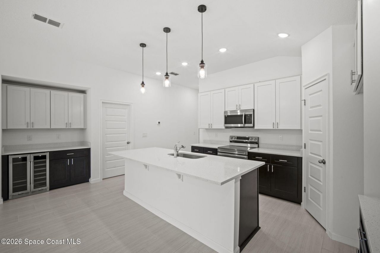 3% SELLER CONCESSIONS! NO HOA! Luxury living at an affordable price! With 1794 SQFT of living space, to include four spacious bedrooms and two elegant bathrooms, this corner lot home offers ample space for both relaxation and entertainment. The open-concept features a modernized kitchen, complete w/ 42 upper cabinets, Samsung stainless steel appliances, large island, dry bar, & highlighted with quartz countertops. The master suite boasts an upscale bathroom, with Corian solid surface counters, custom fixtures, and standalone shower w/accented tile and flooring. Additional bedrooms are generously sized, ideal for guests or a home office. Other features are custom tile throughout (NO CARPET!), custom efficient fixtures and LED lighting, prewire for fans in all bedrooms, storm shutters, double pane windows, hurricane rated garage door, and covered lanai patio for outdoor gatherings. This home is on city water and septic. 1 yr bumper to bumper/2-10 Builder warranty included.